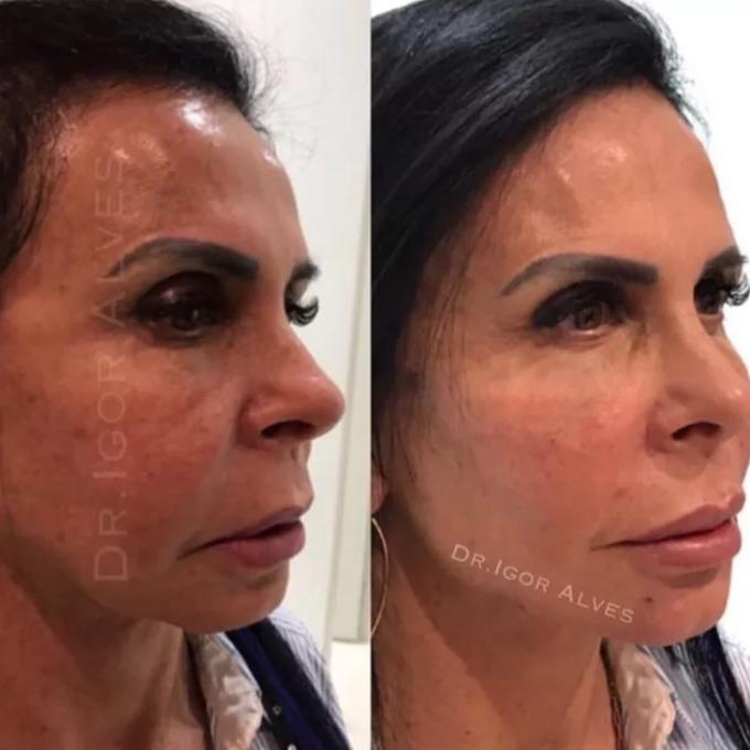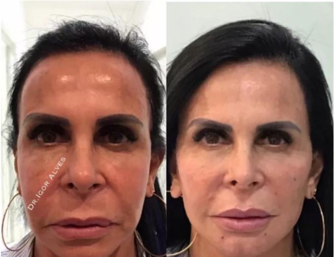 Gretchen passou por uma harmonização facial e comemorou as mudanças no rosto com fotos de antes e depois.