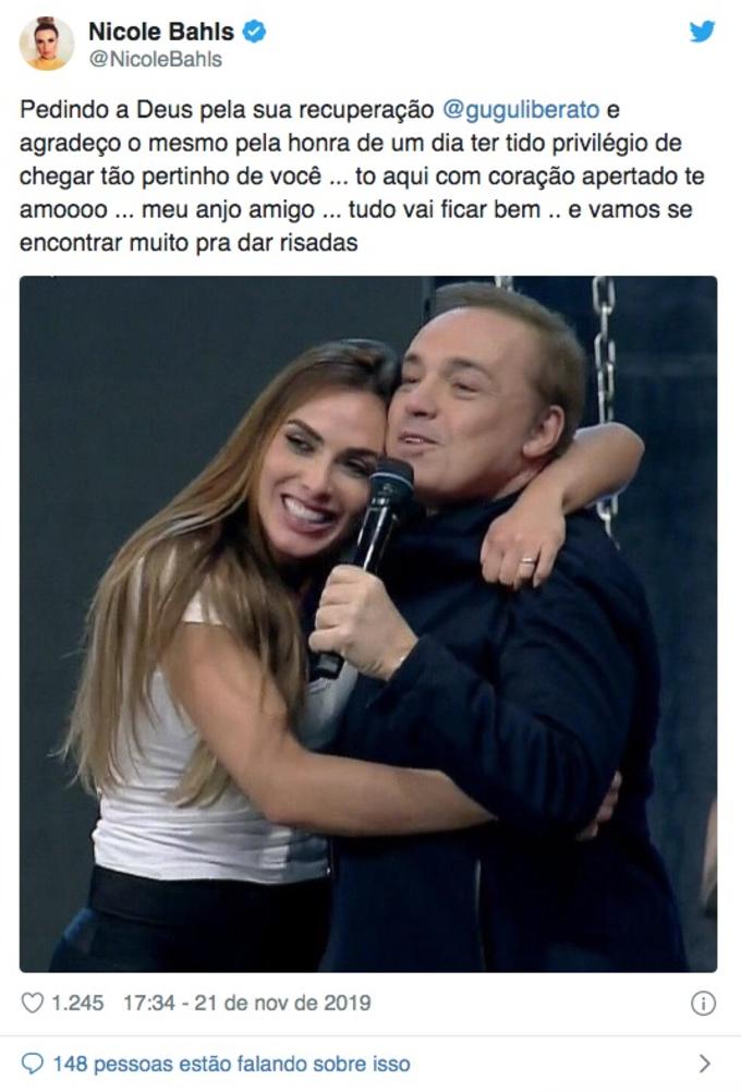 "Querido Gugu, eu e minha esposa estamos em orações e pedindo muito a Deus para te reestabelecer prontamente", escreveu.
