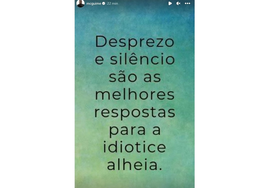 O cantor publicou nos Stories do Instagram nesta segunda-feira (23) uma mensagem que dizia: “Desprezo e silêncio são as melhores respostas para a idiotice alheia".