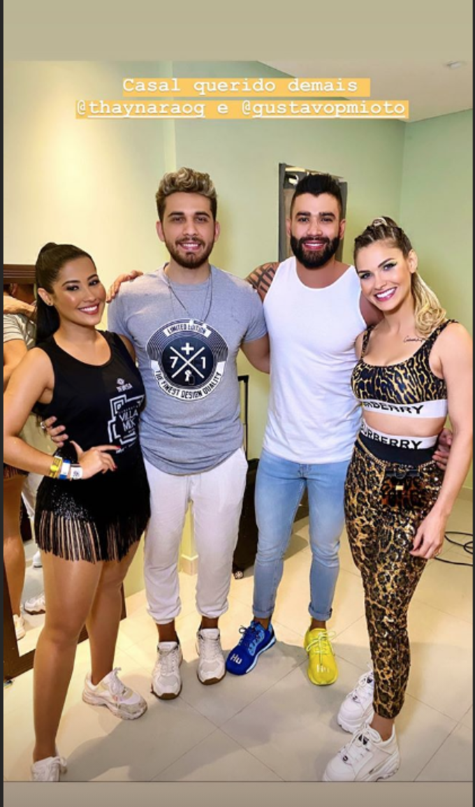 Os rumores de que a blogueira Thaynara OG e o sertanejo Gustavo Mioto teriam reatado o namoro no fim do ano passado ganharam força nas redes sociais, nesta quarta-feira (26), após Andressa Suita postar uma foto com o casal nos bastidores do show do marido, Gustavo Lima.