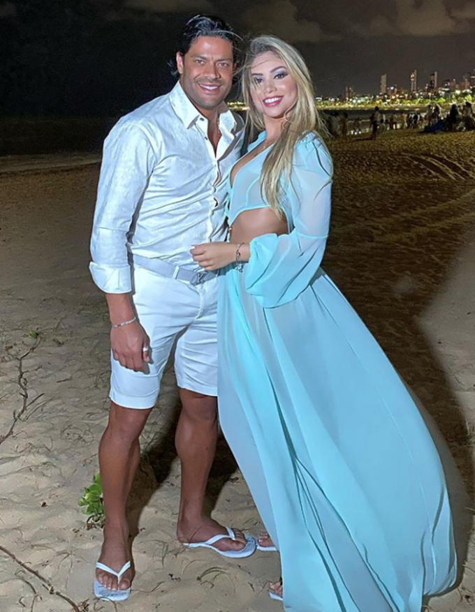 Pela primeira vez, Hulk publicou uma foto com a namorada, Camila Ângelo, sobrinha da ex-mulher do jogador. No Instagram ele se declarou para a amada, além de exibir um anel de compromisso luxuoso.