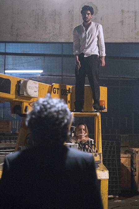 Na cena, José Pedro é quem mata o próprio pai, com um tiro nas costas. As gravações da cena aconteceram na madrugada desta quarta-feira, 11, em um galpão abandonado no centro do Rio de Janeiro.