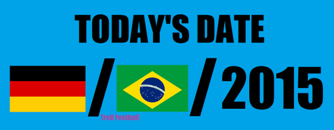 A humilhante derrota da seleção brasileira para a Alemanha na Copa do Mundo de 2014 não foi esquecida. A data da ultima quarta-feira repercutiu piadas na web,uma imagem que se tornou viral mostra a data trocando o dia 7 e o mês 1 pelas bandeiras da Alemanha e do Brasil. A brincadeira faz referência ao placar obtido pela atual seleção campeã mundial de futebol no Mineirão. A imagem foi publicada no Twitter, e logo ganhou repercussão. A derrota foi a maior sofrida pelo Brasil na história das Copas.