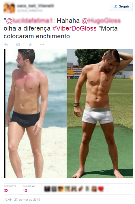 Pelo Twitter é possível ver uma montagem que foi feita do rapaz, mostrando um comparativo dele na praia, de cueca preta, e no ensaio, de cueca branca, com um volume aparentemente maior.