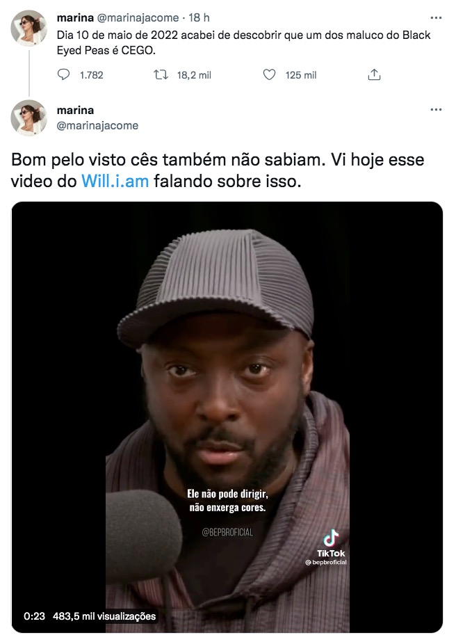 Internautas ficaram chocados ao descobrirem que Apl.de.Ap, integrante do Black Eyed Peas, é cego. A descoberta veio após uma entrevista antiga de Will.i.am vir a tona em que o artista fala sobre a cegueira do colega.