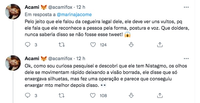 Apesar do espanto após a descoberta, Apl.de.Ap tem nistagmo há anos. A doença causa oscilação involuntária nos olhos e redução da acuidade visual.