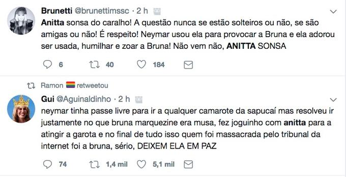 Anitta negou que tivesse ficado com Neymar na Sapucaí e que tenha provocado Bruna Marquezine com o jogador, mas a declaração da cantora não foi aceita pelos internautas.
