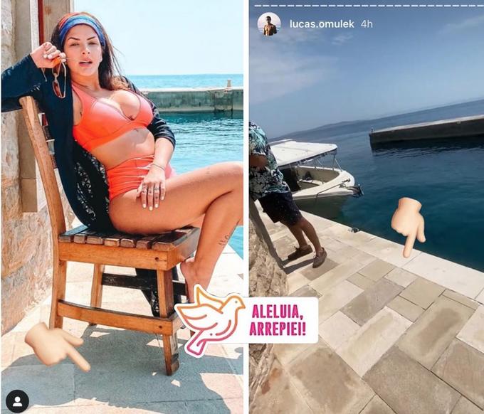 Lary Bottino, que embarcou com Anitta, tem postado fotos nos mesmo lugares em que Lucas também tem aparecido nos stories. Alguns fãs também apontaram ter escutado a voz da cantora em um dos stories de Lucas.