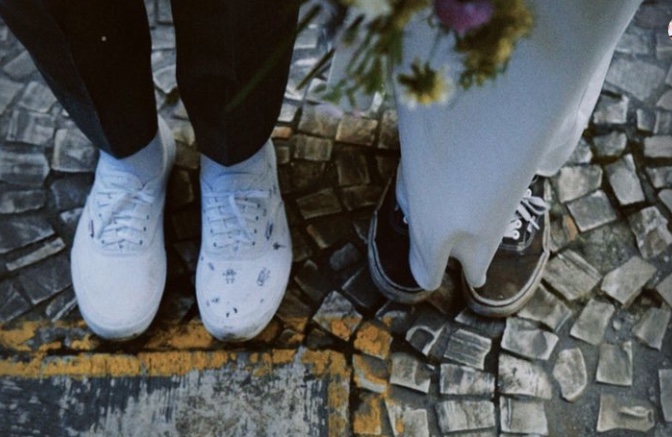 A atriz e campeã do MasterChef 2021 mostrou que fez sua própria maquiagem, e usou um tênis "surrado" vans para completar o look de noiva no cartório. O calçado é considerado o seu "tênis da sorte", usado em sua vitória no reality culinário.