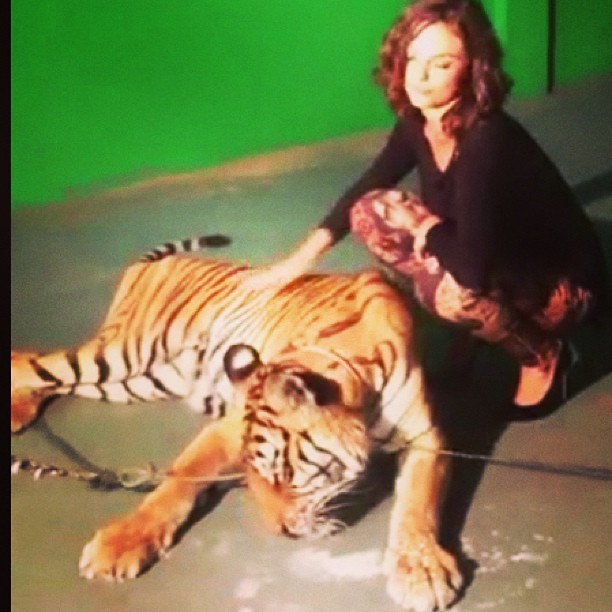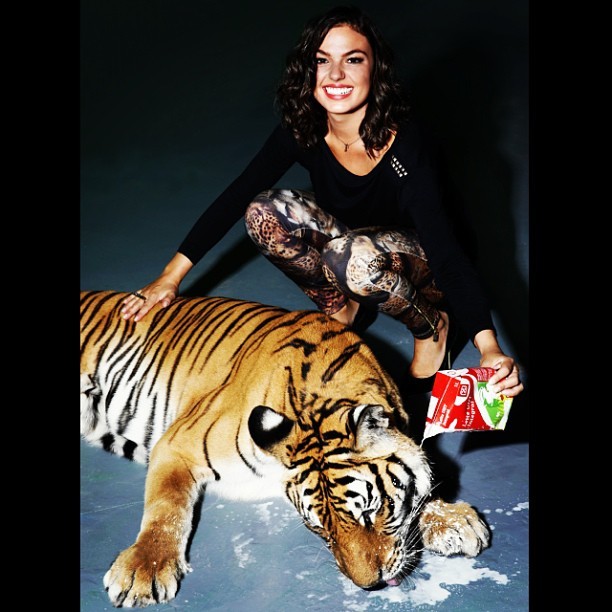 Isis Valverde postou no Instagram uma foto em que aparece dando leite para um tigre, em um ensaio fotográfico.