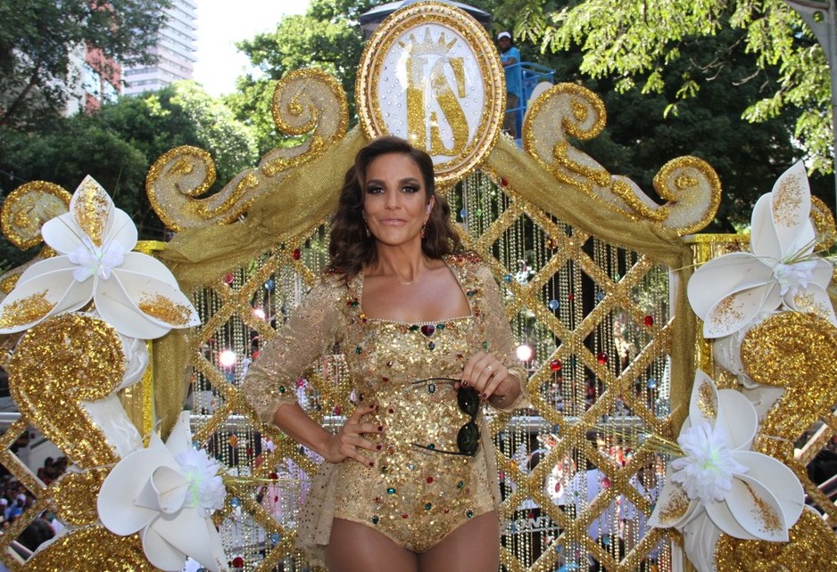 Ivete Sangalo se transformou em uma rainha com sua roupa toda dourada, com aplicações de pedras. A baiana fez a festa no Carnaval de Salvador, no tradicional trio do Circuito Campo Grande, na Bahia.