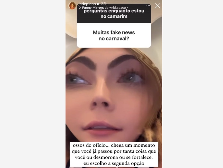 Em uma caixa de perguntas aberta no story do Instagram, um seguidor perguntou se houve muitas fake news no carnaval. A atriz de Travessia, por sua vez, responde que não precisa da época de festas para sofrer com notícias inverídicas e disse ter receio de dar entrevistas.