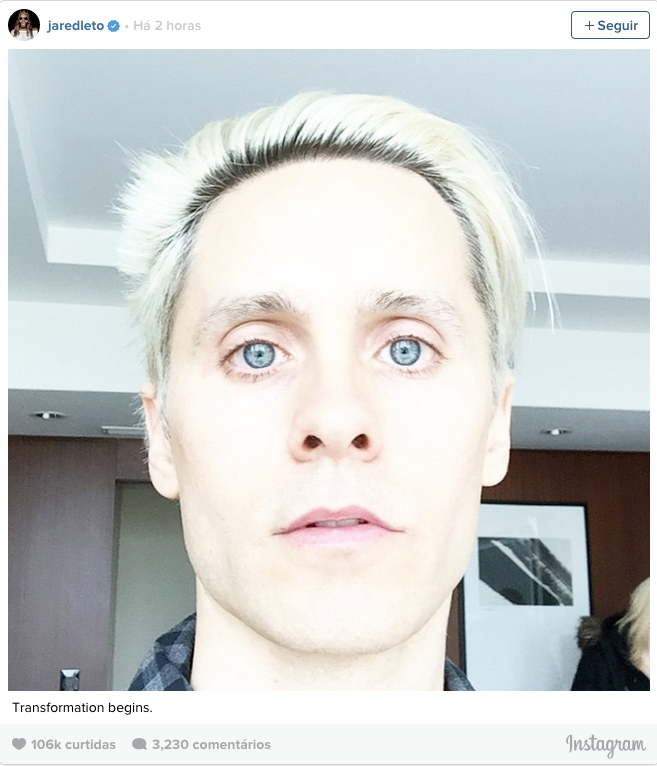 Jared Leto publicou um novo teaser da sua transformação em Coringa. O ator, que chegou ao set de Esquadrão Suicida, acompanhado por Cara Delevingne e Karen Fukuhara, publicou uma foto no seu Instagram com a legenda "Começa a transformação”: