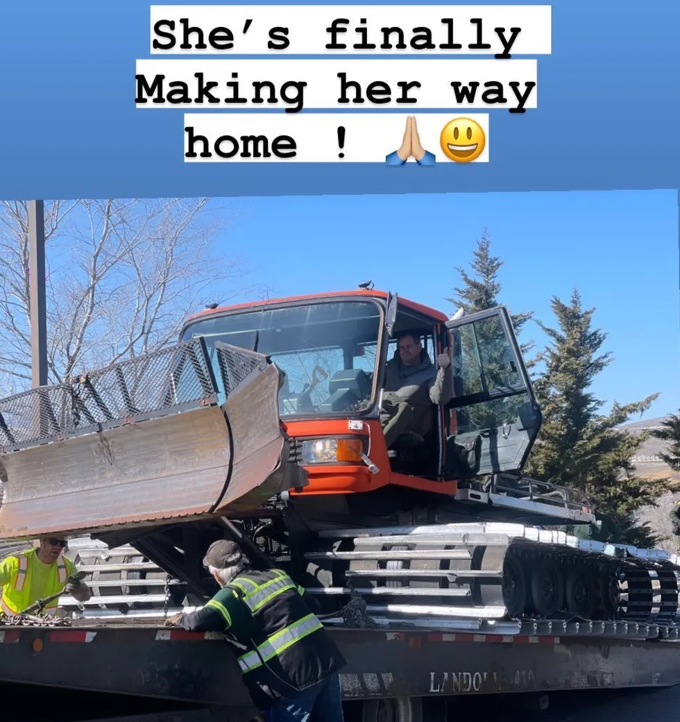 Jeremy Renner posou nesta sexta-feira, 24, ao lado do veículo que quase o matou em um acidente na neve e comemorou a retirada do automóvel pelas autoridades locais.