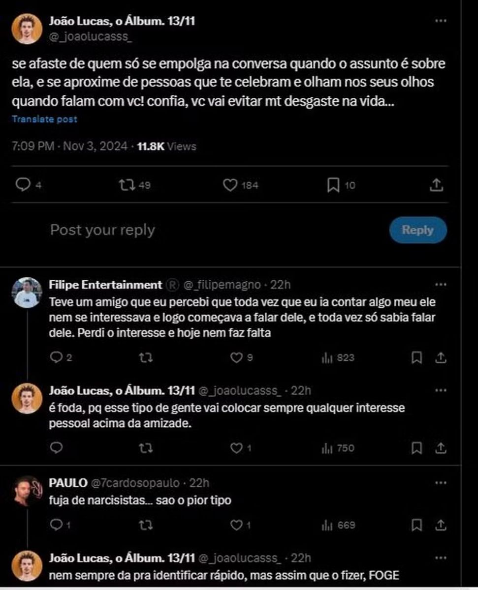 Em meio aos preparativos para lançar um álbum, João Lucas fez uma publicação enigmática no X (antigo Twitter), dizendo que se afastaria de "pessoas que só se empolgam quando é sobre elas", o que os fãs interpretaram como uma indireta para Priscilla.