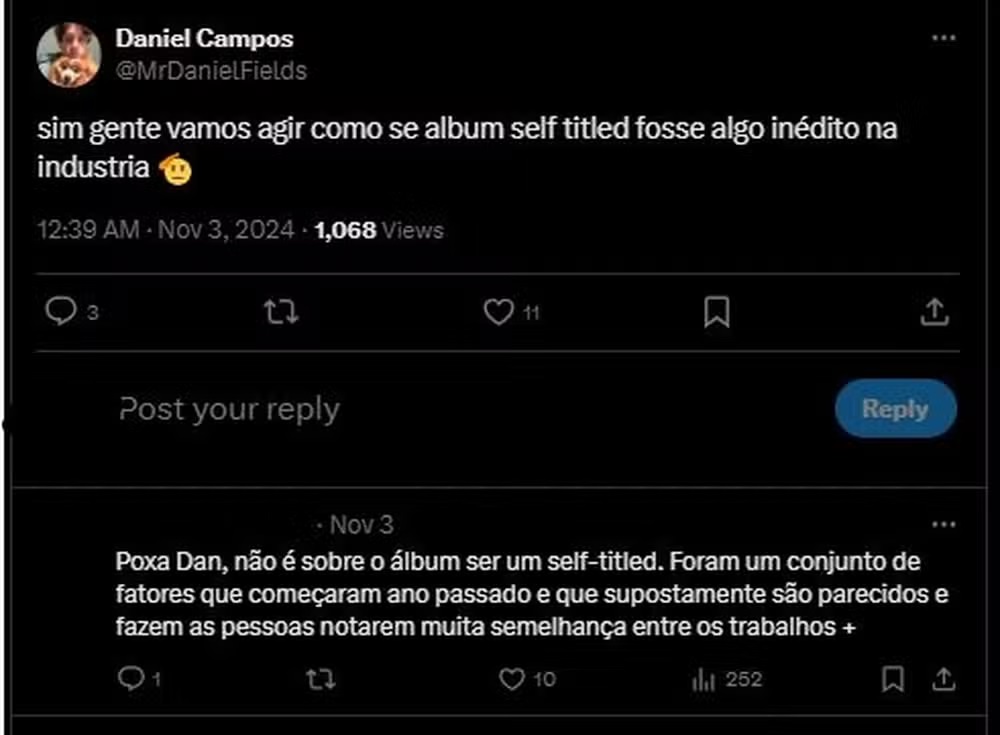 Daniel Campos, amigo de Bruna Marquezine, ironizou a situação no X, comentando que álbuns autointitulados não são novidade na música, em possível defesa de João Lucas. Após as trocas de indiretas, João Lucas, Sasha e João Guilherme deixaram de seguir Priscilla, confirmando que as indiretas eram direcionadas a ela.