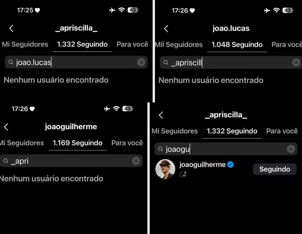 João Lucas, Sasha Meneghel e João Guilherme deram unfollow em Priscilla Alcântara após uma polêmica de plágio entre João Lucas e a cantora. Para quem não sabe, eles eram amigos e tanto Priscilla quanto João começaram cantando no meio gospel e agora migraram para o pop.