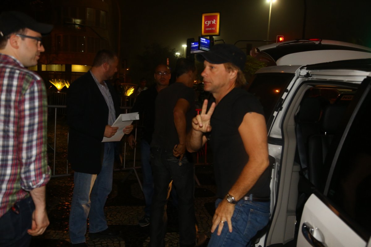 Jon Bon Jovi desembarcou no Rio de Janeiro na madrugada desta sexta-feira, 20, e ao chegar no hotel onde está hospedado em Ipanema, na Zona Sul da cidade, o vocalista da banda mais aguardada desta sexta no Rock in Rio, foi cercado por fotógrafos.