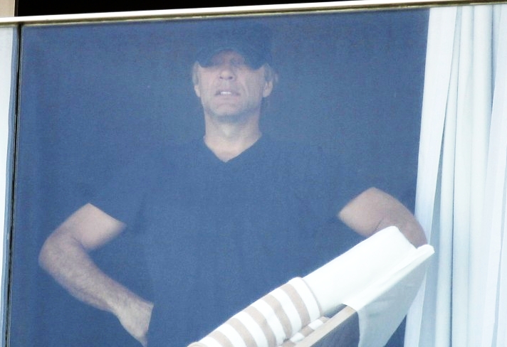 Com a aparência cansada, o músico acenou brevemente e logo entrou no local. Depois de um bom descanso, o cantor que acordou tarde, foi visto observando a vista da sacada do seu quarto. Quem também apareceu com 'cara de sono' na janela do hotel foi o baixista da banda, David Bryan. VEJA ABAIXO A PROGRAMAÇÃO DA SEXTA-FEIRA NO ROCK IN RIO 2013.