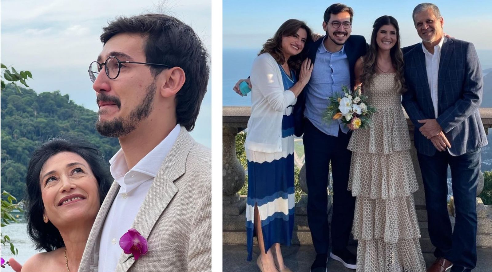 O casório aconteceu aos pés do Cristo Redentor, no Rio de Janeiro, e contou com outros nomes famosos do jornalismo, como William Bonner e Fátima Bernardes e as filhas do ex-casal, Laura e Beatriz.