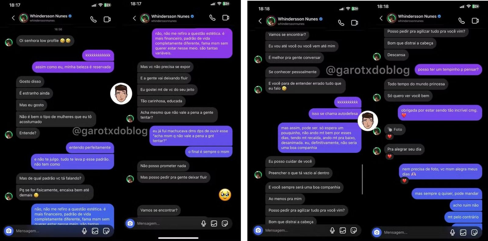 Confira os prints que, segundo Whindersson Nunes, seriam fake: