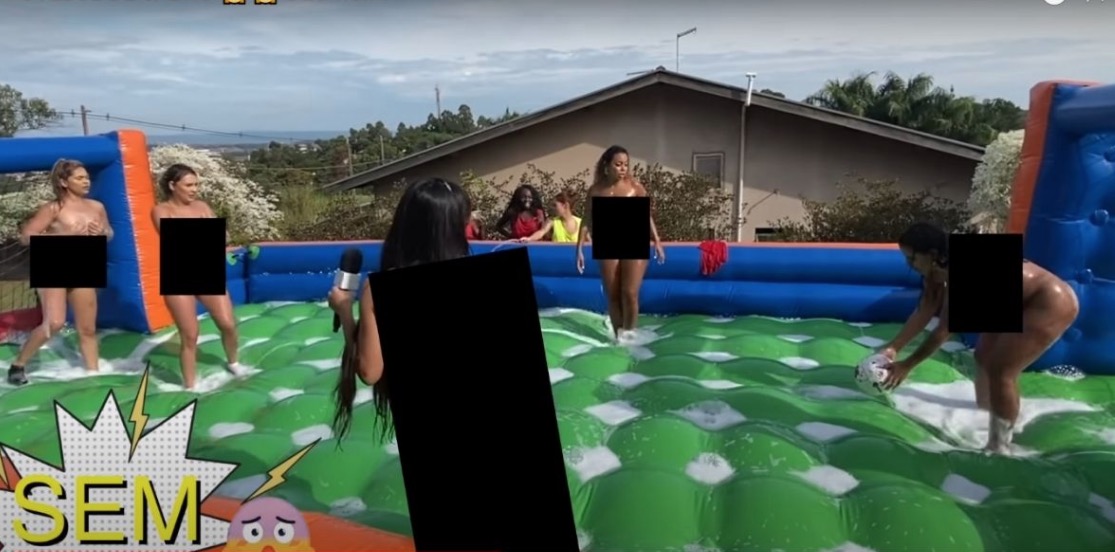 Juliana Bonde lançou nessa terça-feira (10) o segundo episódio do reality “Entrando Com Bola e Tudo” e mostrou as meninas da “Mansão Bonde” completamente nuas jogando futebol de sabão.