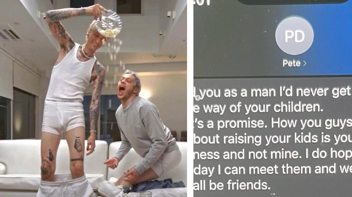 Como se não fosse o suficiente, Kanye postou uma foto do rapper Machine Gun Kelly e Pete Davidson juntos com um print de uma conversa com Pete, em que o comediante teria tentado se aproximar do rapper. Na legenda, ele disse que Davidson nunca vai conhecer seus 4 filhos.