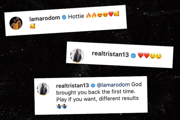 Depois de ver o comentário ousado de Lamar, Tristan resolveu pegar pesado com o jogador: “@lamarodom Deus te trouxe de volta da primeira vez. Jogue [novamente] se quiser, com resultados diferentes”. Após o ataque de Tristan, Lamar apagou o seu comentário.