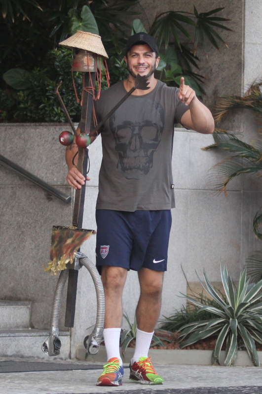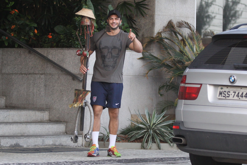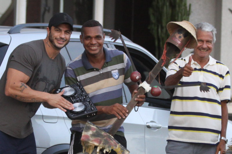 Na tarde desta terça-feira, o rapaz pegou o objeto já enferrujado e saiu pelas ruas. Depois de posar com curiosos, Bambam entrou em um carro.