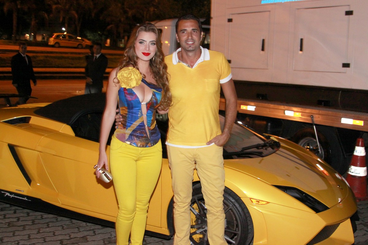 Tudo amarelo: Latino chegou combinando com o carro e sua noiva. Foto: Alex Palarea e Philippe Lima/AgNews