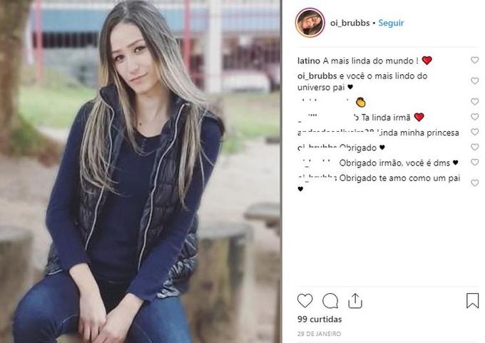 Nas redes sociais da jovem, o pai mostra que é bem coruja, Em; uma das fotos da filha, Latino comentou: "A mais linda do mundo". Ela respondeu: "E você o mais lindo do universo, pai".