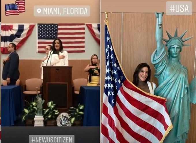 No Instagram, a advogada compartilhou um registro do momento em que faz o juramento na cerimônia de naturalização nos EUA. "Que momento especial. Fui convidada para falar em minha cerimônia de naturalização nos EUA. Estou tão orgulhosa de ser uma cidadão americana", se alegrou