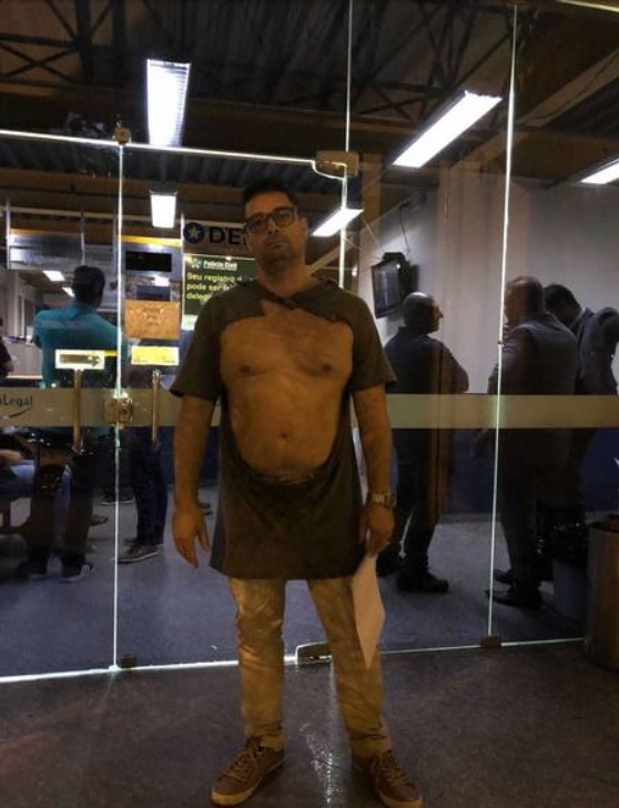 Pai de Letícia com as roupas rasgadas (Foto: Arquivo Pessoal)