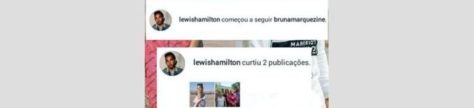 Vale lembrar que Bruna já marcou presença no Instagram do campeão de F1. A atriz foi uma das modelos de uma coleção de roupas assinada por ele. Lewis postou a foto em que Bruna estava de barriga de fora, ao lado de Alessandra Ambrósio, e fãs do casal 'Brumar', que na época ainda estava de pé, chegaram a alertar o jogador nos comentários.