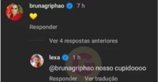 Bruna deixou um comentário com emoji de coração no post do casal e Lexa comentou: “Bruna, nosso cupido”.