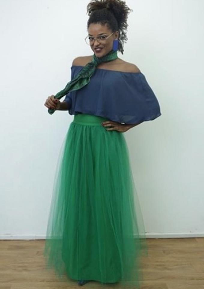 Além de Jéssica (com coroa) e Jaqueline com decote ao limite, outro look que dividiu opiniões foi o da ex-BBB Nayara, 4ª eliminada do programa. Dona de um estilo bem próprio, a jornalista ousou com uma saia longa verde de tule, e lencinho no pescoço, fazendo uma combinação bem forte de azul e verde.