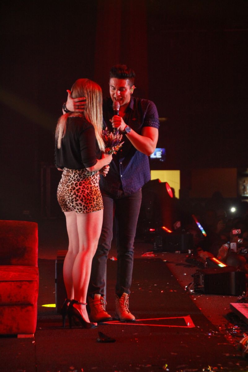 No palco, o cantor que recentemente ficou solteiro, dançou e recebeu uma mão boba de uma das dançarinas. Além disso, ele fez a alegria de uma fã ao chamá-la para subir ao palco e apreciá-lo de perto durante uma música.