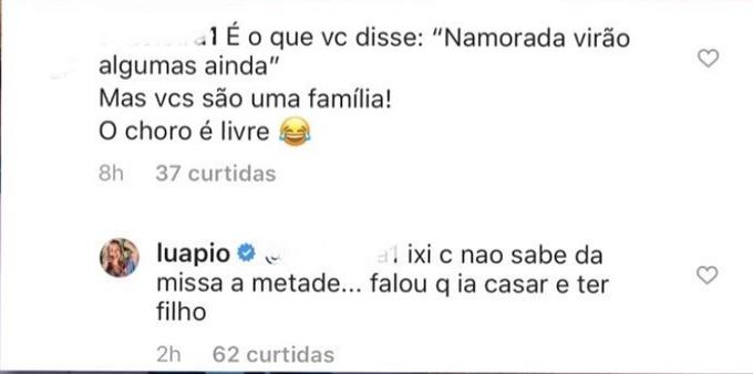 Piovani, então, rebateu: “Ixi você não sabe da missa a metade… falou que ia casar e ter filho”, disse em tom de deboche.