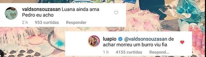 Nos comentários, uma seguidora disparou: "Luana ainda ama Pedro eu acho". Prontamente, a loira rebateu com um ditado: "De achar morreu um burro viu fia".