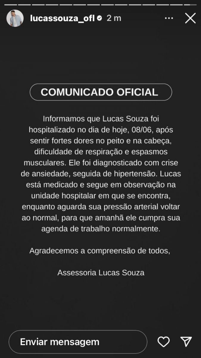 Lucas Souza ainda não se pronunciou sobre o assunto.