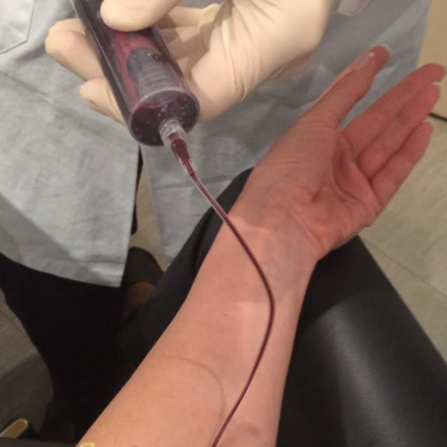 Aparentemente, o tratamento que ela fez é o chamado "PRP" (plasma rico em plaquetas), que consiste na retirada de cerca de 20 ml de sangue do paciente, colocados em um tubo que evita a coagulação do sangue. Em seguida, o líquido é centrifugado por dez minutos num aparelho específico utilizado em laboratórios clínicos e acrescenta-se cloreto de cálcio, que estimula a ruptura das plaquetas.