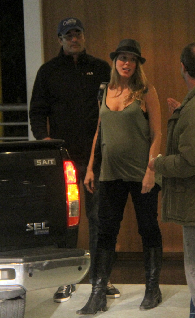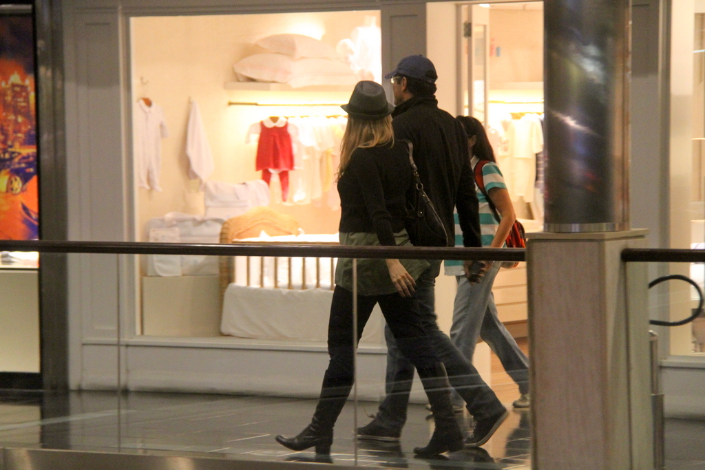 Luciano Szafir aproveitou a noite do domingo para curtir um passeio em um shopping do Rio de Janeiro com Luhanna Melloni (ex-apresentadora do programa 'Papo Calcinha', no Multishow), que espera um bebê do ator para nascer em dezembro.