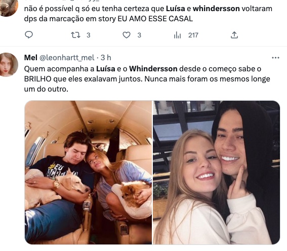Whindersson Nunes e Luísa Sonza levaram os fãs de WhiLu à loucura na noite desta terça-feira (21), após trocarem "arrobas" nas redes sociais.