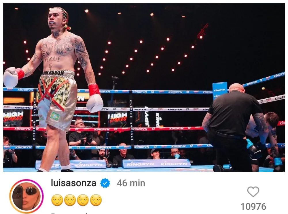 Luísa Sonza deixou um comentário no post de Whindersson Nunes após a vitória contra o polonês Filipek Marcineck no torneio de boxe High Stakes, em Londres, na Inglaterra, neste sábado (22).