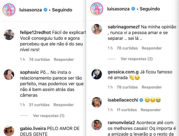 Logo após anunciarem a separação nesta quarta (29) após 2 anos de casamento, Luísa Sonza começou a ser atacada por internautas.