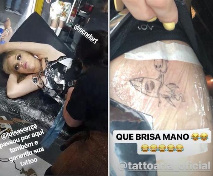 A cantora escolheu o desenho de um extraterrestre em cima de uma nave espacial, com traços finos e simples, na costela. "Gente, eu tô no Lollapalooza e acabei de fazer uma tatuagem. E eu amei a tatuagem. Gente, sério. Tô apaixonada", disse ela, que mostrou a foto do desenho: "Que brisa".
