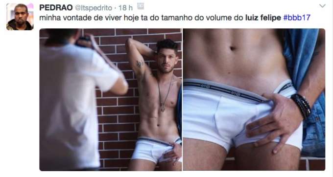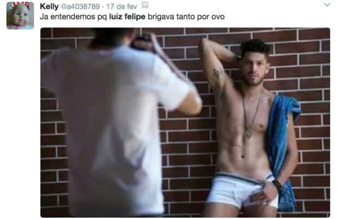 Na primeira imagem divulgada pelo site “Ego”, Luiz posa de cueca branca, mas muitos internautas brincaram com o fato de não ter “volume” entre as pernas do rapaz.