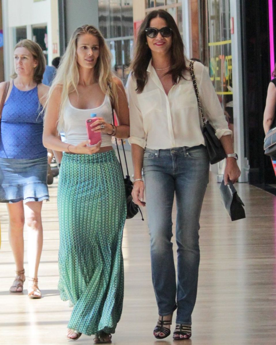 Já Yasmin desfilou seu corpo esbelto e cabelos loiros com um estilo diferente da mãe, mais puxado para o hippie, mas exibiu sua beleza e se jogou nas compras da mesma forma.