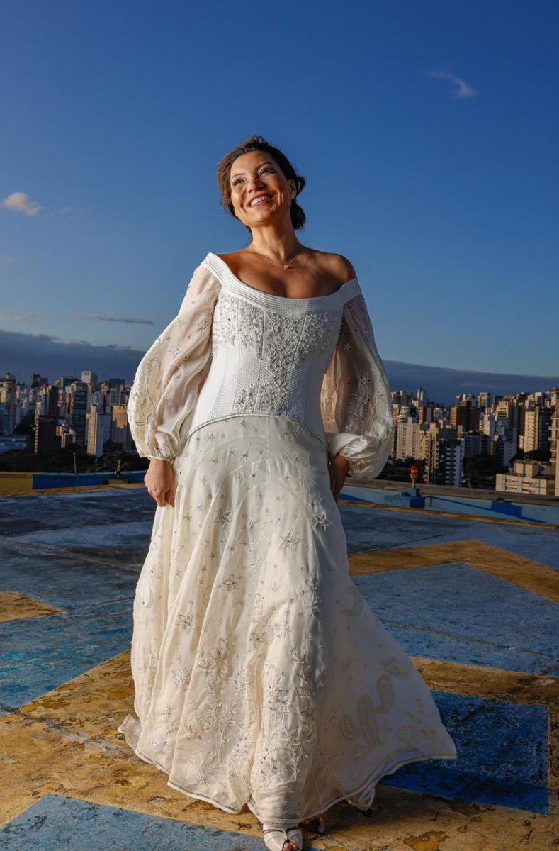 O fotógrafo oficial de Lula registrou Janja vestida de noiva, usando a peça que ganhou de presente das estilistas Helô Rocha e Camila Pedrosa: um longo em organza com mangas longas, no tom off white, corpo ajustado e com estrelas bordadas por toda a saia, além de cacto (referência ao Nordeste) e uma lua. Os bordados no vestido foram feitos por moradoras de Timbaúba dos Batistas, município no sertão do Rio Grande do Norte.