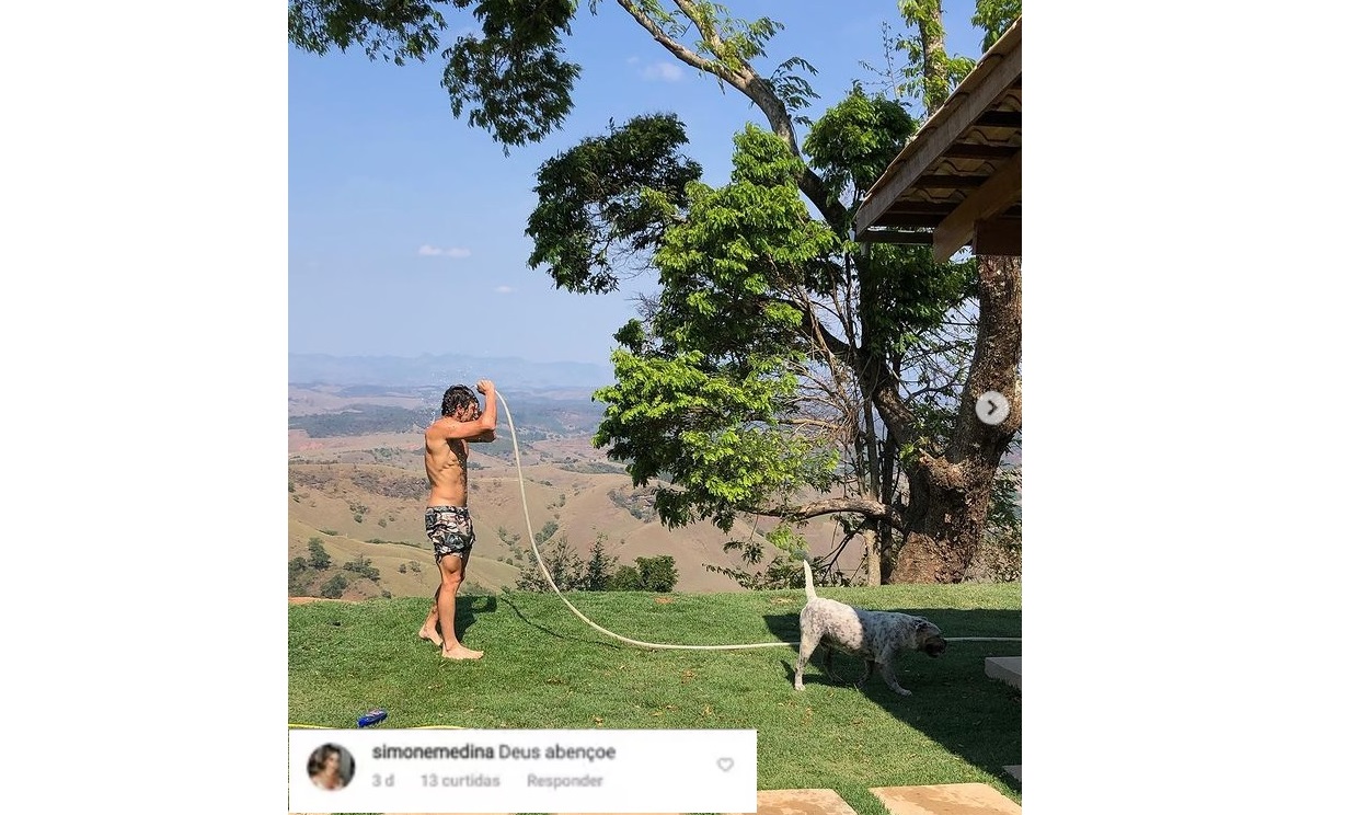 Simone deixou um comentário em um post de Evandro Soldati, que foi casado por 15 anos com Yasmin. “Deus abençoe”, escreveu ela em um vídeo do modelo tomando banho de mangueira.